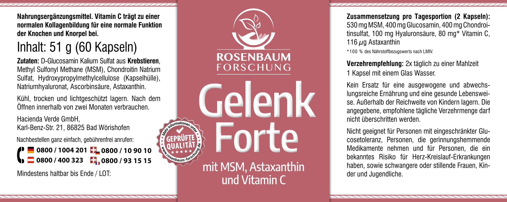 • Für die besonders belasteten Knorpelzellen haben wir mit Astaxanthin extra ein super-mächtiges Antioxidans in der Formel für GelenkForte.